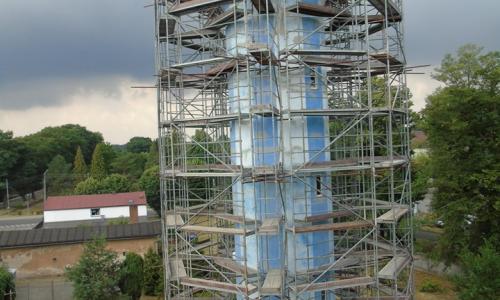 Remont został podzielony na 2 etapy. W etapie I wykonano remont wnętrza zbiornika na wodę. W zakres prac tego etapu wchodziły roboty związane m.in. z: rozebraniem pokryć z żywic, czyszczeniem mechanicznym powierzchni poziomych, skośnych, pionowych oraz sufitowych, osuszaniem wnętrza zbiornika, antykorozyjnym zabezpieczenie odkrytego zbrojenia betonu, naprawa metodą iniekcji spękań betonu, gruntowanie uprzednio oczyszczonych i naprawionych powierzchni, szlamowanie powierzchni ścian zbiornika preparatem specjalistycznym, pokrycie ścian zbiornika preparatem docelowym uszczelniającym.