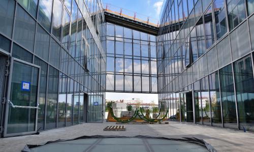 W ramach inwestycji zastosowano szereg innowacyjnych rozwiązań technicznych. Woda z zielonego dachu gromadzona jest w zbiornikach retencyjnych i wykorzystywana do podlewania go w okresach zmniejszonej ilości opadów. Kolejna podziemna konstrukcja mieści zbiornik lodu, który współpracując z pompą ciepła wspomaga ogrzewanie i klimatyzację budynku. To innowacyjne rozwiązanie, zastosowane po raz pierwszy w naszym kraju do obiektu o tak dużej skali i zapotrzebowaniu energetycznym.