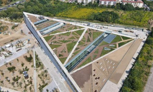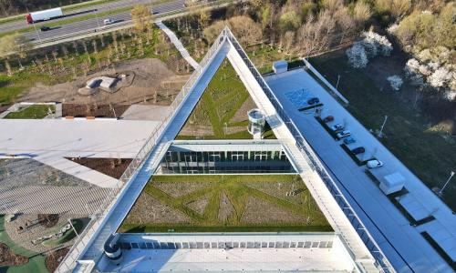 Obiekt wyposażony jest również w inteligentny system sterowania urządzeniami BMS, jest posadowiony w dużej mierze pod ziemią, dzięki czemu korzysta z energii gruntu. Efekt oszczędności energetycznej przynosi również zastosowanie wielu warstw zielonego dachu, które izolują sufity. Na parkingu zewnętrznym znalazła się również ładowarka dla samochodów elektrycznych.