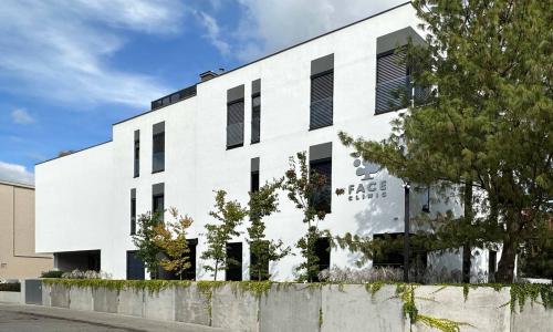 Zrealizowany projekt Kliniki jest w znacznej mierze rozbudową istniejącego budynku, którego zastana i nieprzerwanie funkcjonująca część została również poddana gruntownej przebudowie. Cała idea zmiany struktury wewnętrznej, fasady i sposobu funkcjonowania budynku stała się możliwa konstrukcyjnie dzięki unikalnym właściwościom zastosowanego w projekcie betonu. To dzięki charakterystyce tego niezwykłego materiału wewnętrzne patio doświetlające sale pooperacyjne oraz pracownie protetyki unosi się nad głównym wejściem dla pacjentów. Patio, które jest ważnym elementem tektoniki budynku zostało obłożone od wewnątrz stalą nierdzewną odbijającą wpadające światło, potęgujące wrażenie przestrzeni. Wewnętrzne patio pełni jeszcze jedną ważną funkcję, oferując pacjentom po operacji spokój i całkowitą dyskrecję przy równoczesnym pełnym dostępie do światła słonecznego i widoku. To znane z kultury śródziemnomorskiej rozwiązanie jest naturalną klimatyzacją w upalne lato i swego rodzaju „termosem” utrzymującym temperaturę w okresie zimy. Projekt przedefiniował na nowo sposób komunikacji wewnątrz budynku oraz otwarć na zewnętrze. Klinika jest betonową trójwymiarową strukturą, gdzie światło jest istotnym budulcem wewnętrznych przestrzeni. Duże rozpiętości, wspornikowe nadwieszenia i podcięcia bryły budynku pozwalają uzyskać efekt transparentności oraz pomagają w prawidłowej orientacji przestrzennej i organizacji skomplikowanych funkcji.