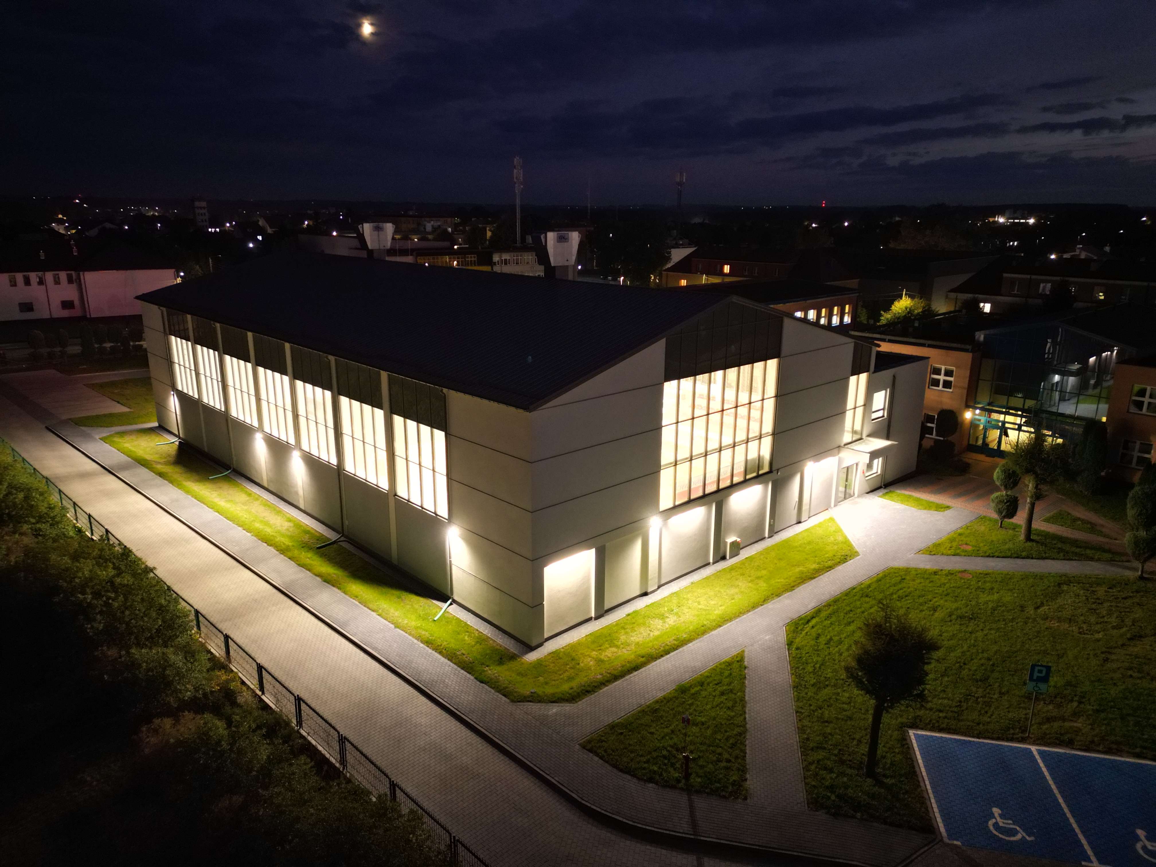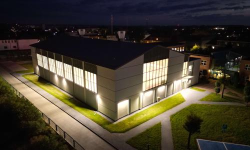 Nowoczesny obiekt, który prezentujemy do ogólnopolskiego konkursu kosztował około 12 milionów złotych. Obiekt hali sportowej został udanie wkomponowany w istniejący układ urbanistyczny i tworzy wraz ze szkołą praktyczny kompleks szkolny. Budowa oferuje ponad 1000 metrów kwadratowych areny (boiska) i pomieszczenie siłowni o powierzchni około 55 metrów kwadratowych oraz zaplecze składające się z 4 szatni i czterech pomieszczeń łazienkowych z natryskami , magazynu na sprzęt sportowy a także z pomieszczeń dla nauczycieli wychowania fizycznego, gabinetu pierwszej pomocy medycznej. Dodatkowo hala wyposażona jest w ściankę wspinaczkową, drążki gimnastyczne i nowoczesny system nagłośnienia i wentylacji. Łączna powierzchnia użytkowa hali, która została wyposażona w nowoczesny sprzęt umożliwiający uprawianie wszystkich najbardziej popularnych dyscyplin sportowych wraz z pomieszczeniami towarzyszącymi, wynosi ponad 1500 metrów kwadratowych. Można korzystać z pełnowymiarowego boiska do gry w piłkę ręczną, piłkę siatkową, piłkę koszykową i Futsal. Konstrukcyjnie hala wyposażona jest w widownię (trybuny)z 200 miejscami siedzącymi w tym 4 miejsca dla osób niepełnosprawnych. Obiekt został oddany do użytku w czerwcu 2025 roku.