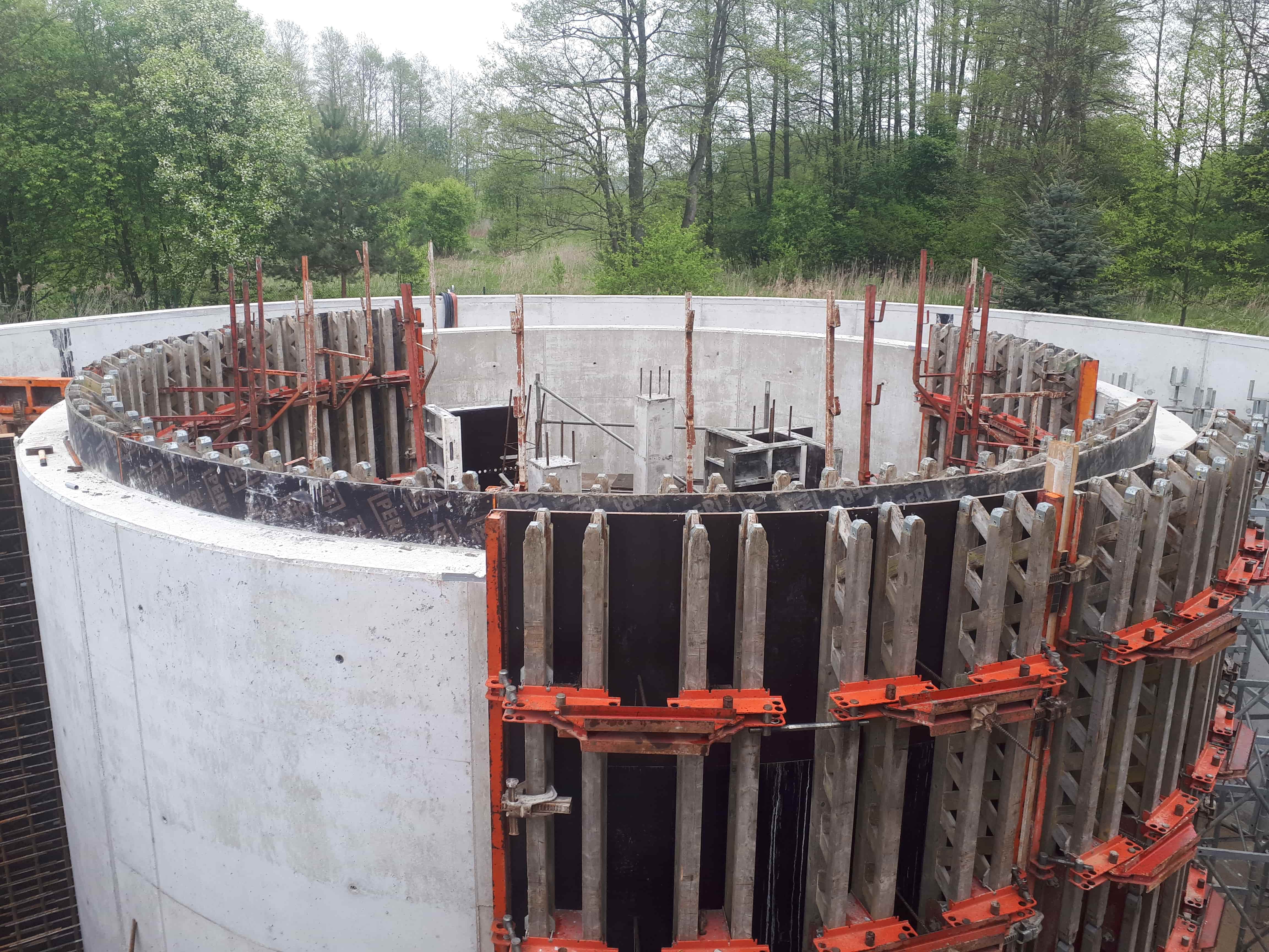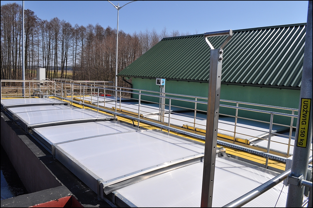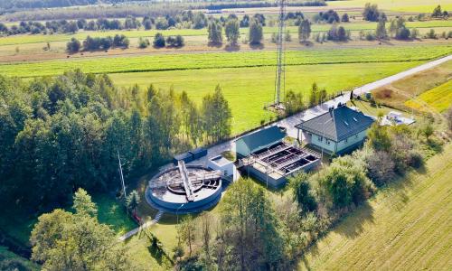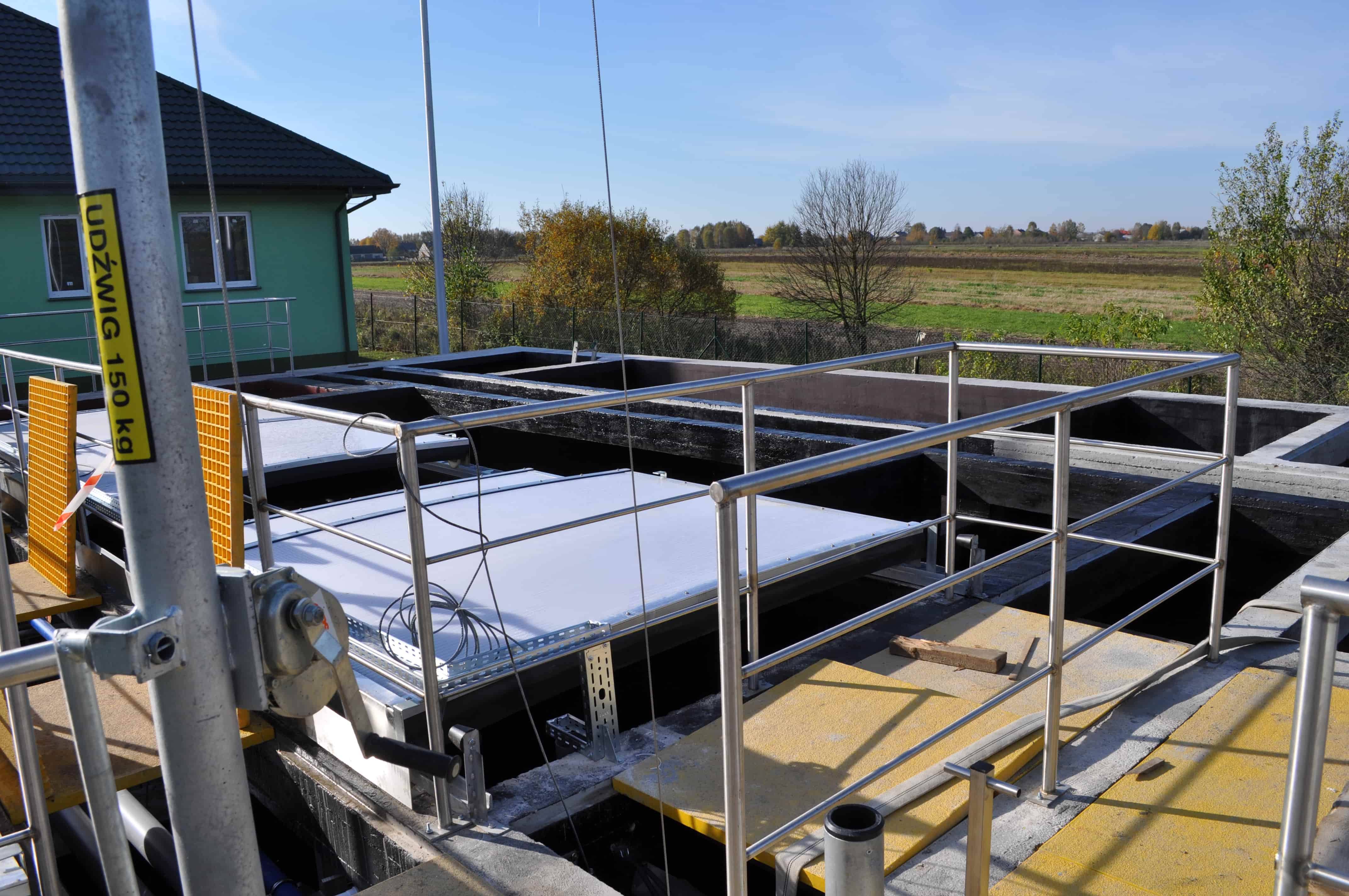 Kluczowym elementem zadania była budowa nowego bloku biologicznego o przepustowości około 650 m³/d. W jego ramach powstał zadaszony reaktor biologiczny pracujący w nowoczesnej technologii hybrydowej ze złożami stacjonarnymi, wyposażony w wysokowydajny system napowietrzania. Rozwiązanie to zwiększa stabilność procesów biologicznych, poprawia skuteczność usuwania związków organicznych oraz biogenów, a jednocześnie optymalizuje zużycie energii. Wewnątrz pierścienia reaktora zlokalizowano nowy osadnik wtórny, wydzielono zbiornik osadu nadmiernego (ZON) oraz wykonano suchą pompownię osadu recyrkulowanego i nadmiernego wraz ze stacją dozowania PIX. Istniejąca stacja dmuchaw została doposażona w trzy nowe urządzenia zapewniające odpowiednie parametry pracy całego układu.