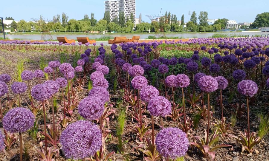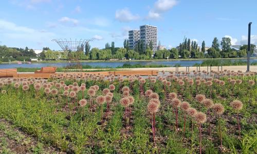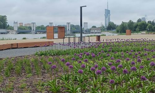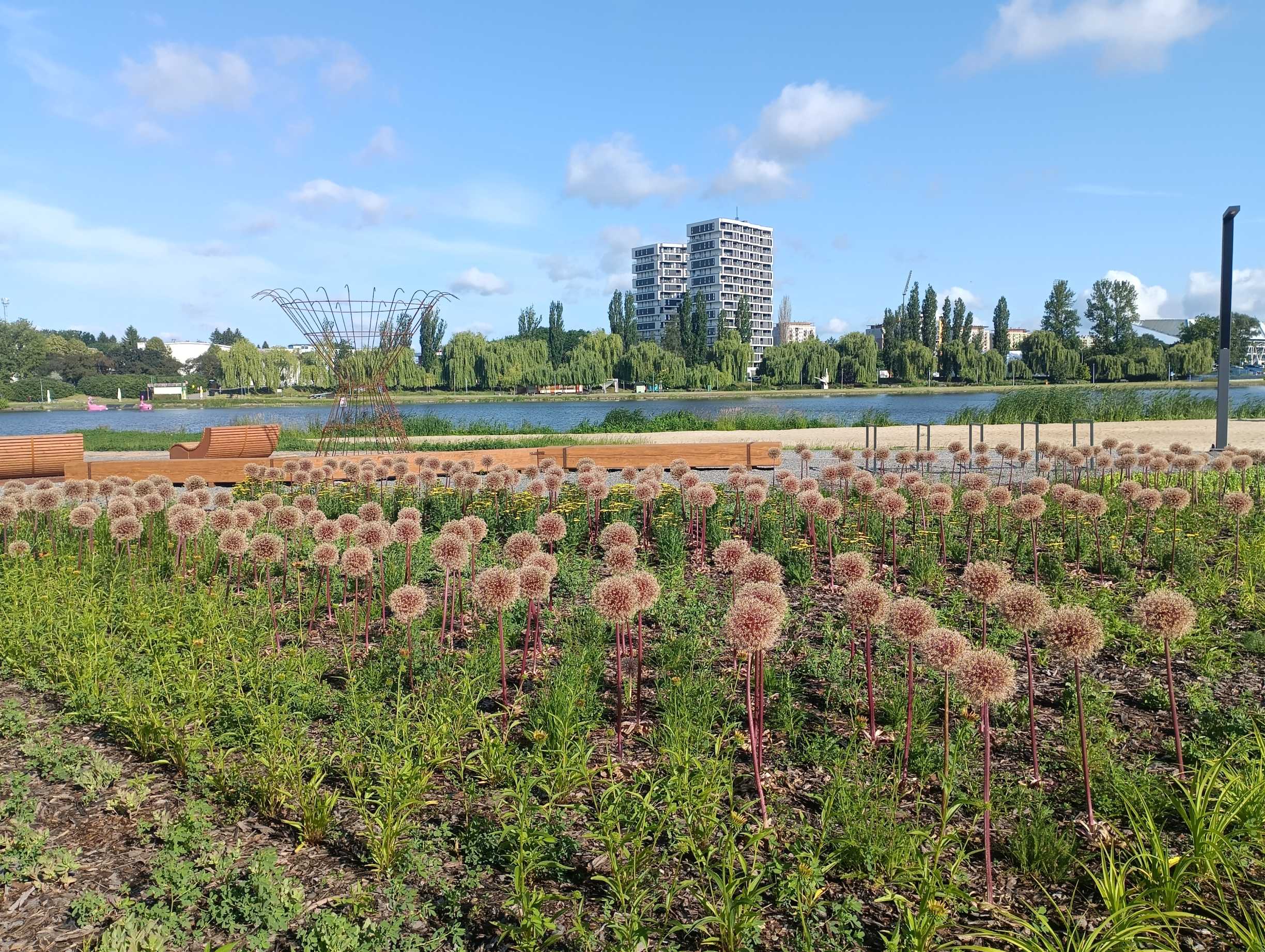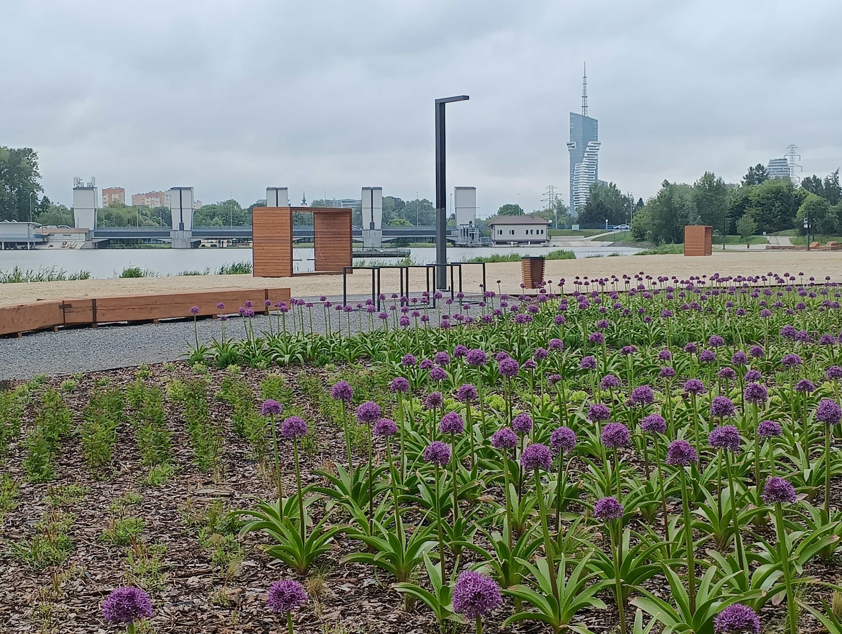Innowacyjnym pomysłem zastosowanym w projekcie stała się stal kortenowska. Charakteryzuje się ona tym, że w wyniku warunków atmosferycznych takich jak wiatr, słońce a także w dużej wilgotności, podlega procesowi utleniania. Jest to efekt zamierzony nawiązujący do marynistycznego charakteru obiektu. Znajdując się w strefach z małą architekturą można podziwiać otaczające teren nasadzenia bylin, traw oraz krzewów. W projekcie znalazły się takie gatunki jak jeżówki, imperaty, miskanty, rozchodniki, ostnice, szałwie, trzcinniki, turzyce i czosnki olbrzymie.