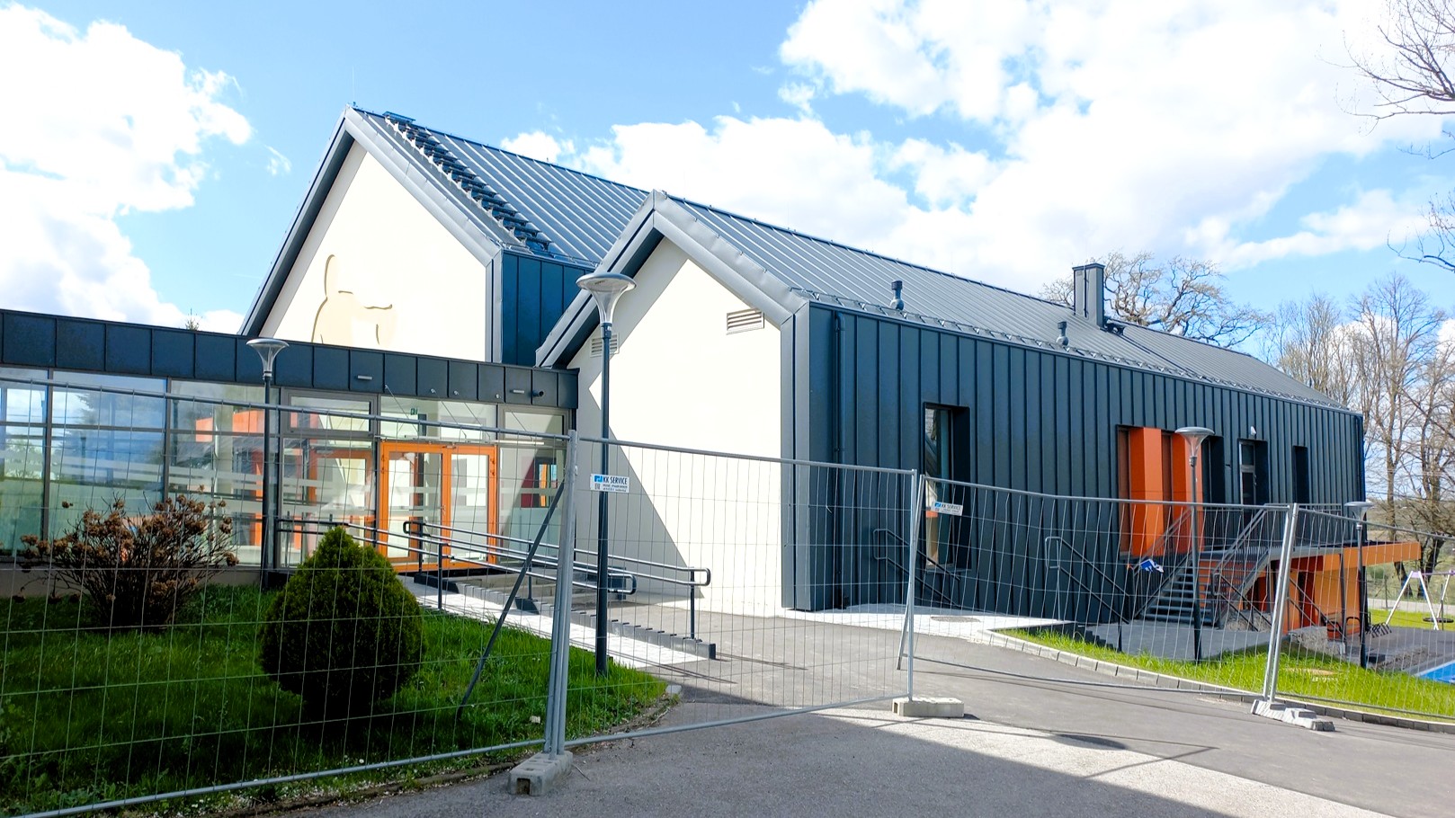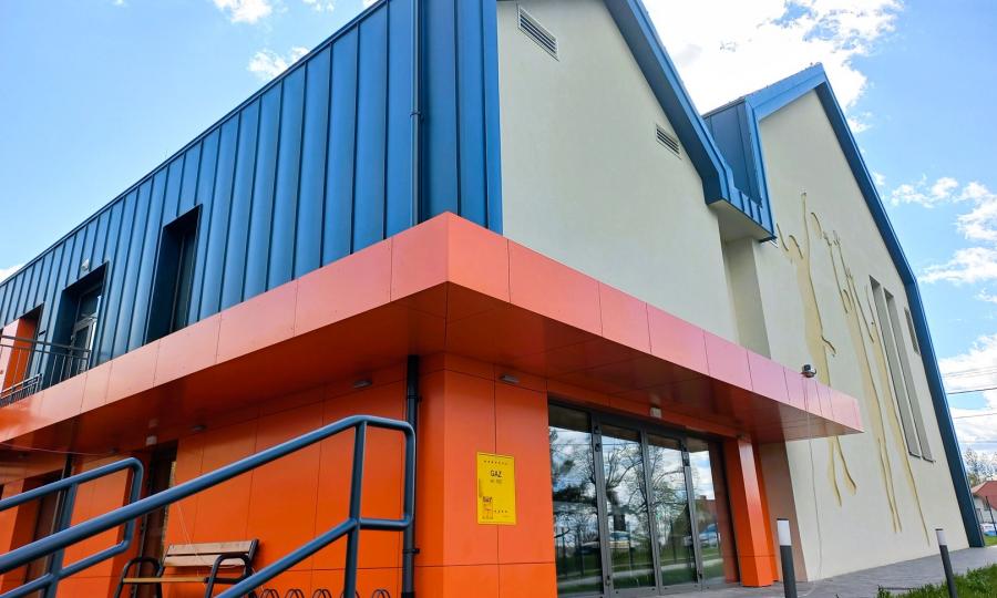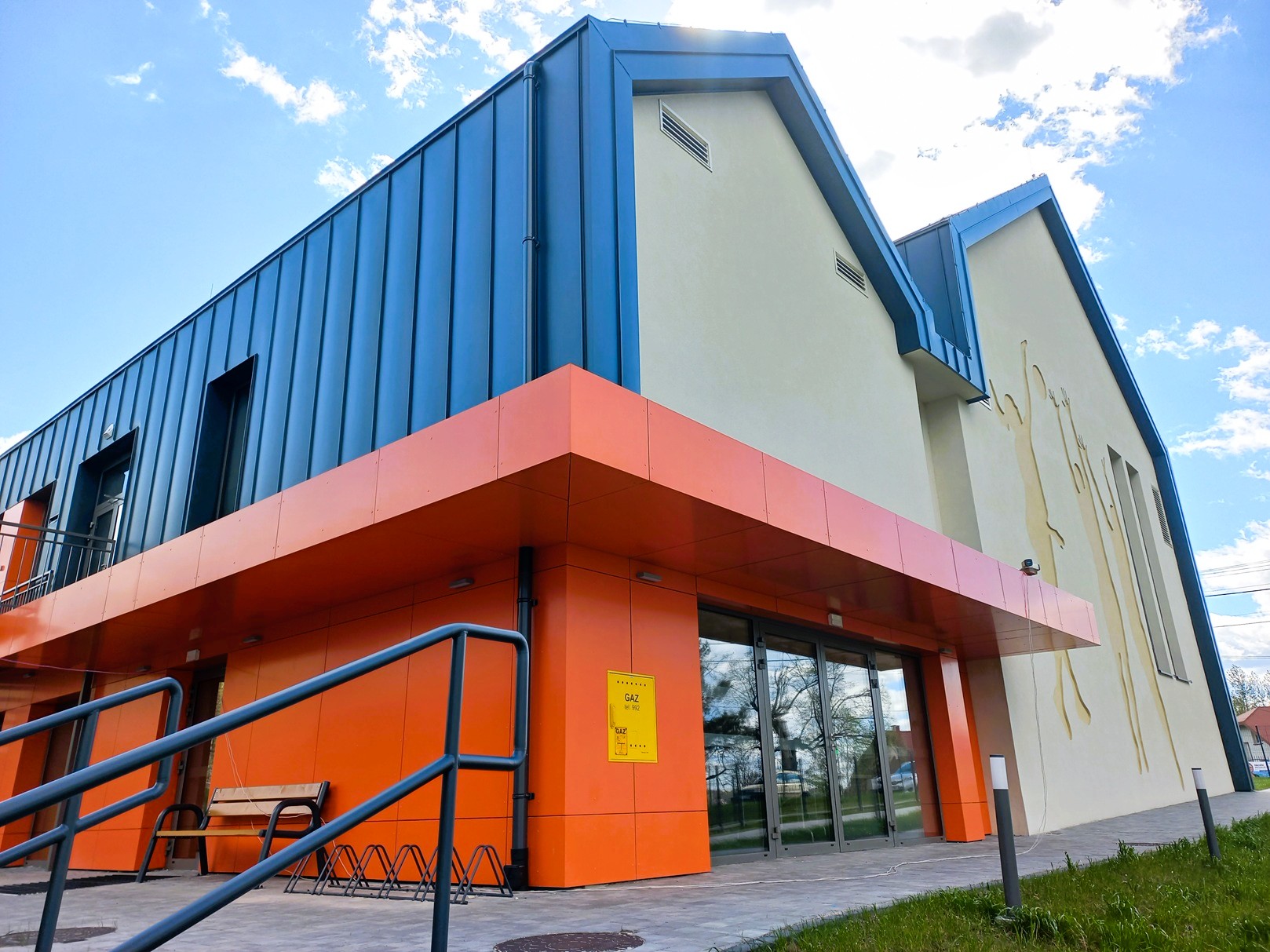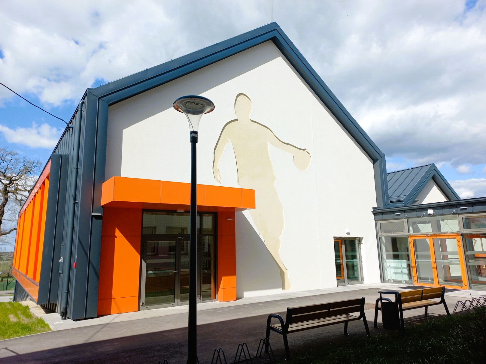Inwestycja obejmowała budowę budynku sali gimnastycznej z zapleczem szatniowym i technicznym, przewiązki łączącej projektowany budynek sali budynek sali z budynkiem szkoły, budowę niezbędnej infrastruktury technicznej oraz zagospodarowanie terenu. Rzut budynku składa się z dwóch prostokątów połączonych korytarzem komunikacyjnym. Budynek południowy o funkcji sali gimnastycznej jako jednokondygnacyjny jednoprzestrzenny. Bryła budynku na planie regularnego prostokąta kryta dachem dwuspadowym o kącie nachylenia 35st. Dach i elewacje boczne zaprojektowano jako wykończone okładziną blachy płaskiej układanej na rąbek stojący. Ściany szczytowe wykończone tynkiem cienkowarstwowym. Budynek zaplecza sali zaprojektowano analogicznie jak budynek sali na planie prostokąta. Poprzez korytarz komunikacyjny sąsiaduje z salą gimnastyczną. Budynek kontynuuje formę budynku sali czyli prosta bryła na planie prostokąta kryta dachem dwuspadowym o kącie nachylenia 35st. Przewiązka komunikacyjna oraz łącznik komunikacyjny kryty dachem płaskim. Okna w formie nowoczesnej zaprojektowano jako klasyczne okna bez parapetów oraz przeszklenie wielkoformatowe w postaci zestawów ściany kurtynowej.
