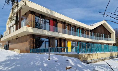 Obiekt odpowiada na wszystkie potrzeby osób z trudnościami w poruszaniu się i mimo trudnej relacji terenu rozwiązano komunikację obiektu w taki sposób aby nie powodował żadnych barier czy przeszkód architektonicznych.
