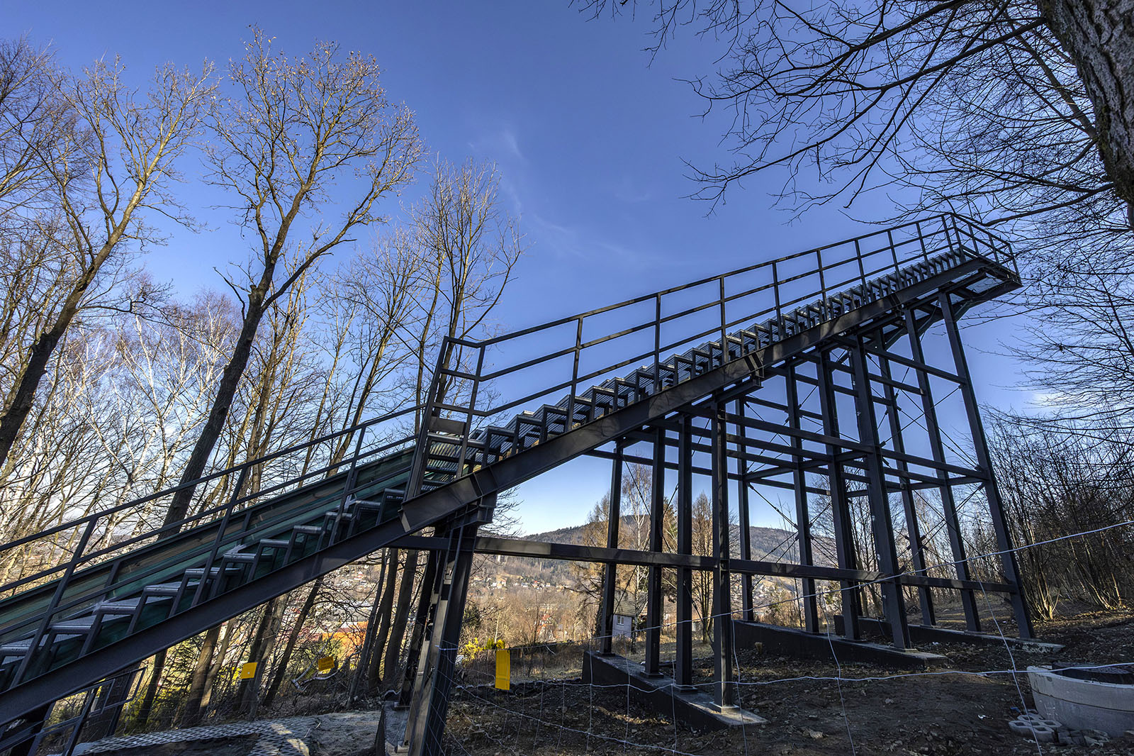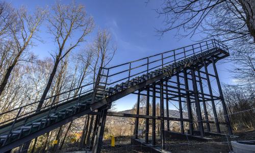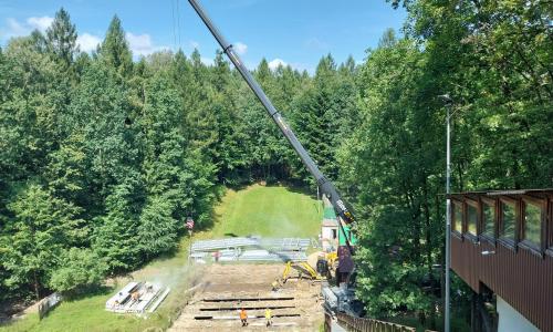 Zastąpienie drewnianej konstrukcji wieży HS31 rozwiązaniem stalowym oraz wprowadzenie trwalszych elementów w strefie zeskoku (żelbet) to przejście na technologie bardziej odporne na intensywną eksploatację i czynniki atmosferyczne, co przekłada się na bezpieczeństwo i dłuższą żywotność obiektu.