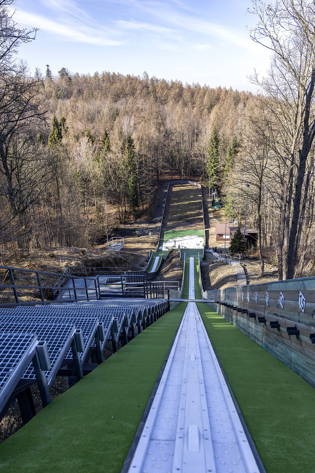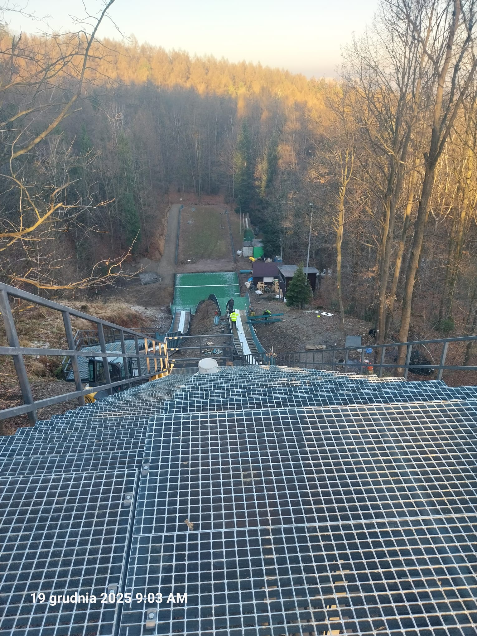Odnowione rozbiegi i zeskok oraz nowe bariery nadały obiektowi spójny, uporządkowany wygląd – widoczna jest jednolita linia osłon i estetyczne wykończenie krawędzi rozbiegu, czytelne oznaczenia, nowe ciągi komunikacyjne i balustrady, uporządkowane zaplecze przy dolnej części zeskoku oraz zadbane otoczenie poprawiły spójność wizualną obiektu i jego odbiór jako nowoczesnej, zadbanej bazy sportowej.