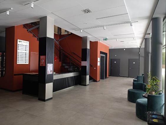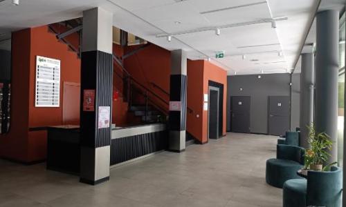 Budynek został w całości przystosowany do korzystania przez osoby niepełnosprawne. Wszystkie pomieszczenia w budynku zaprojektowano bez barier architektonicznych. Na każdej kondygnacji wykonano toalety dla os. z niepełnosprawnościami, komunikacje pionową zapewnia winda o parametrach przystosowanych do obsługi osób z niepełnosprawnościami, łączącą wszystkie kondygnacje wraz z podpiwniczeniem. Do budynku można dostać się bezpośrednio z przyległego terenu przed budynkiem. Na zewnątrz budynku znajdują się wydzielone miejsca dla osób z niepełnosprawnościami. Parking nr 2 zaprojektowano dla samochodów osobowych zamiennie wykorzystywany jako kino samochodowe.