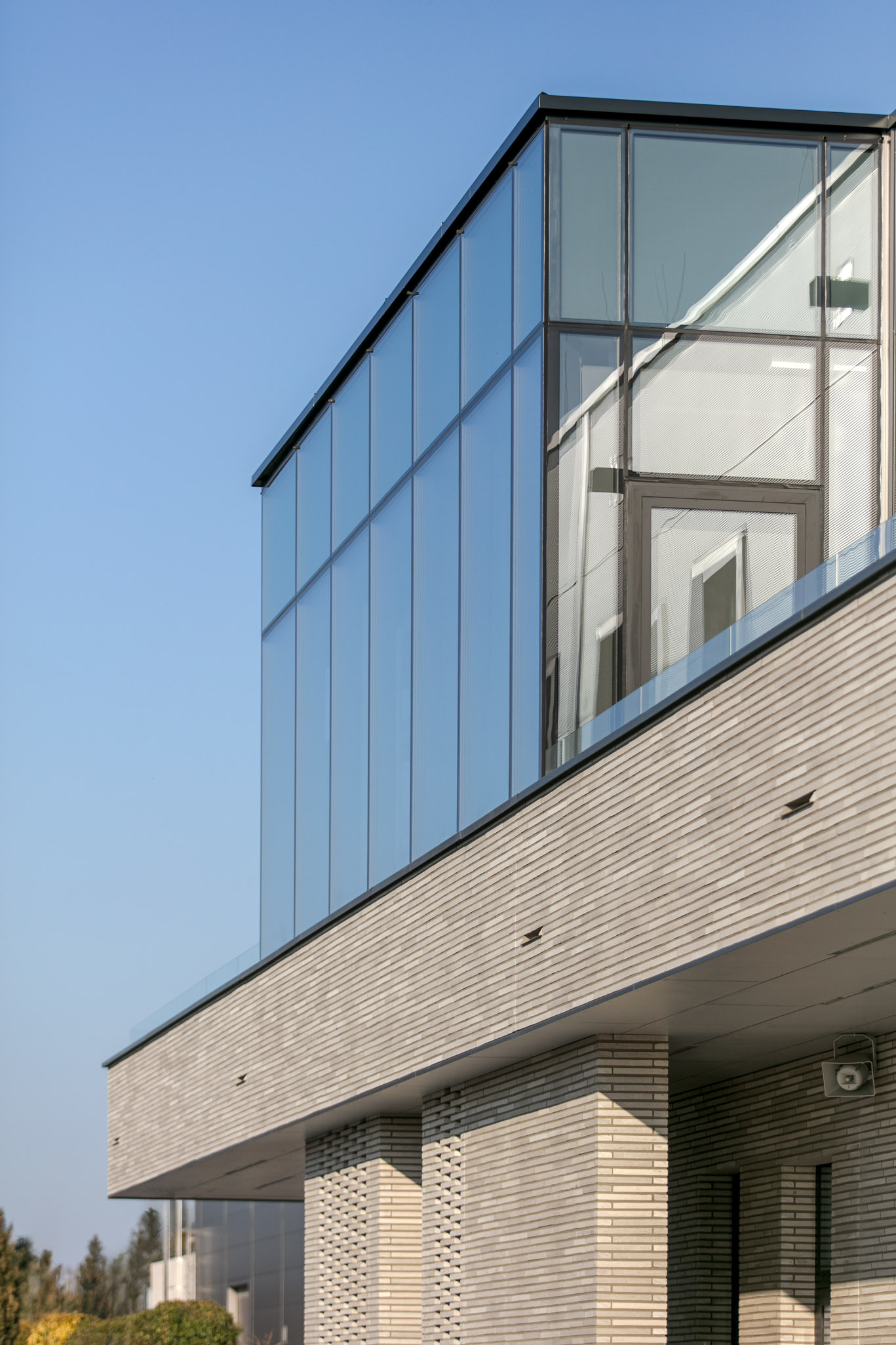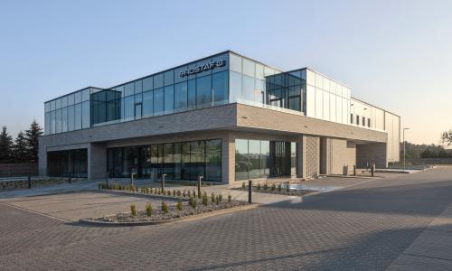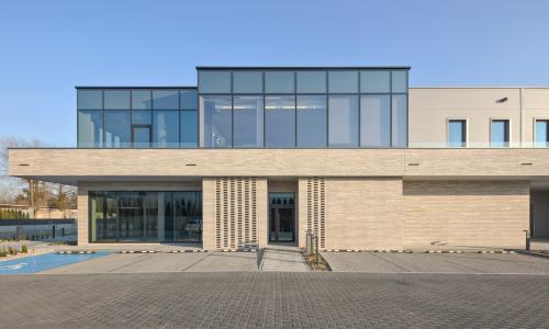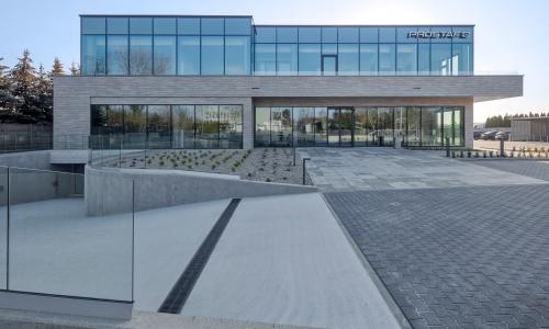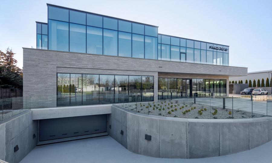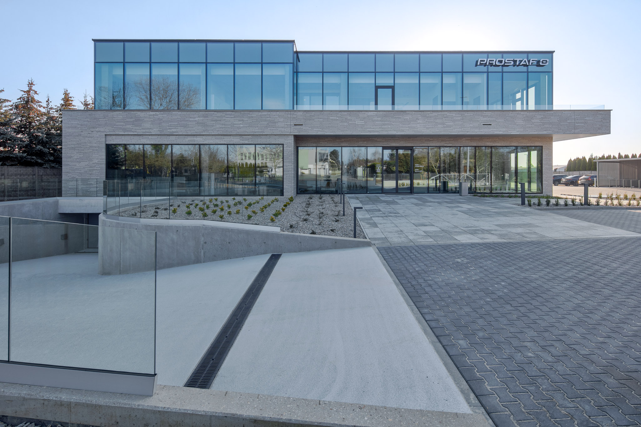 Budynek biurowo-magazynowy w Suchym Lesie został zaprojektowany jako prosta, ponadczasowa forma architektoniczna, w której kluczową rolę odgrywa funkcjonalność i szlachetność zastosowanych materiałów. Bryła składa się z dwóch przenikających się prostopadłościanów, wyraźnie odzwierciedlających podział na część biurową oraz strefy magazynowe. Reprezentacyjna elewacja frontowa łączy ciężar ceglanego parteru z lekką, przeszkloną kondygnacją piętra, nadając budynkowi elegancji i wizualnej równowagi.