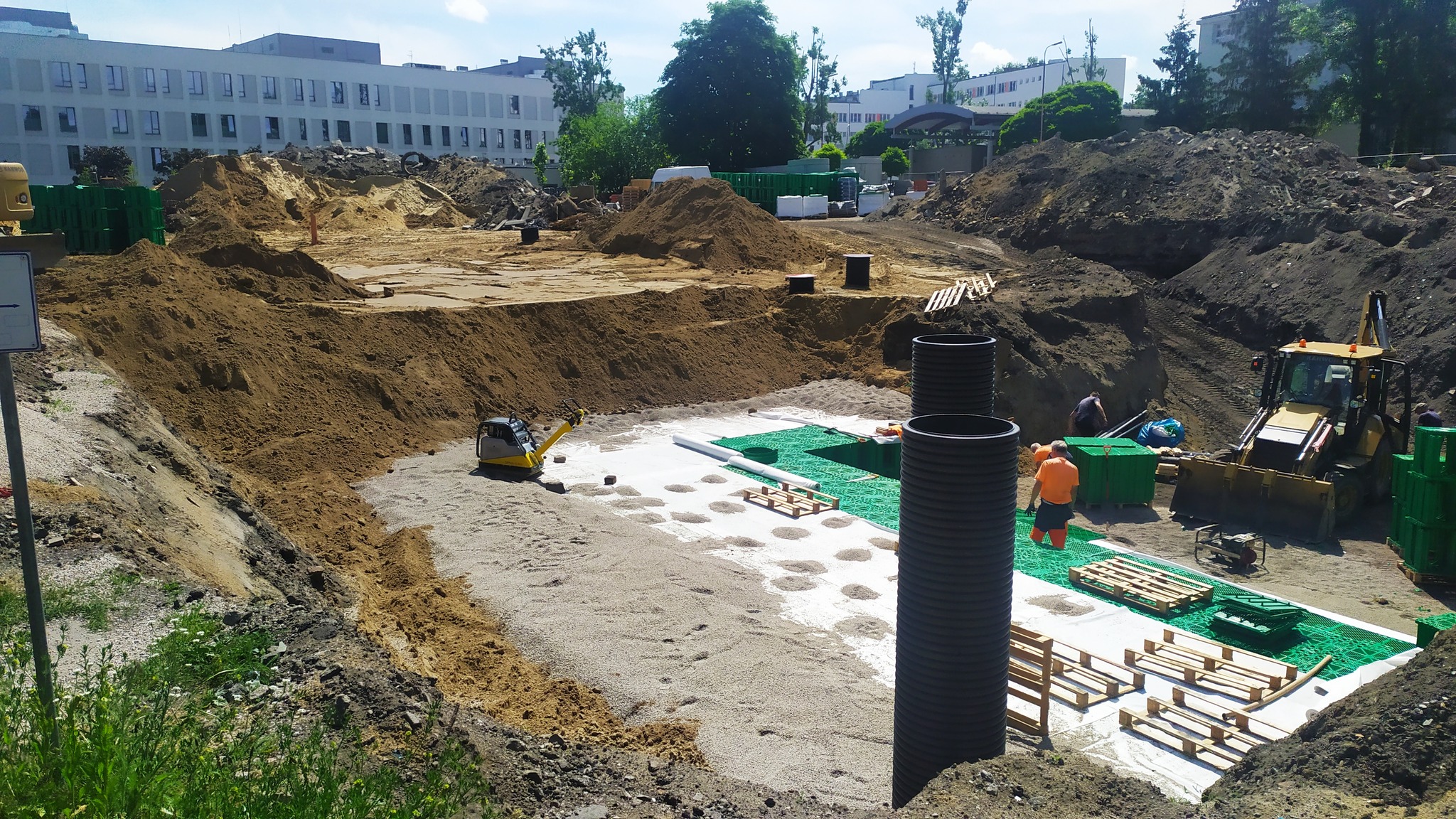 • Poddano pełnemu recyklingowi wszystkie betonowe materiały rozbiórkowe, a uzyskany gruz betonowy wykorzystano na podbudowy jezdni i chodników na obszarze całej inwestycji.