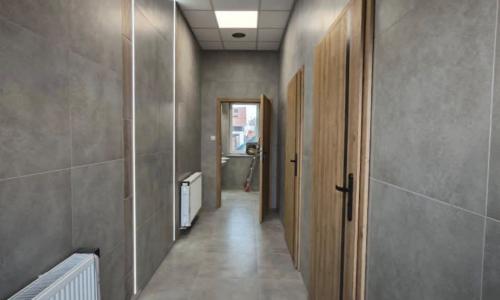 Przedmiotowy obiekt to nowoczesny budynek administracyjny zlokalizowany na terenie stadionu miejskiego, który przeszedł kompleksową przebudowę. Budynek charakteryzuje się nowoczesną architekturą i wysoką funkcjonalnością, dostosowaną do potrzeb użytkowników obiektu sportowego. Przebudowa budynku miała na celu stworzenie komfortowego zaplecza dla zawodników, trenerów, obsługi technicznej oraz administracji stadion. Na parterze zaprojektowano przestrzeń szatniową, wyposażoną w nowoczesne węzły sanitarne, pomieszczenia gospodarcze oraz techniczne. Na piętrze znajdują się przestrzenie administracyjne, sala konferencyjna, sala fitness, pokój medyczny. Budynek zyska również nowe trybuny, składające się z około 400 miejsc siedzących. Budynek został dostosowany do aktualnych standardów bezpieczeństwa oraz wymogów energetycznych. Zastosowano nowoczesne materiały budowlane oraz rozwiązania zwiększające efektywność energetyczną, w tym izolacje termiczne, energooszczędne oświetlenie LED. Nowoczesny budynek administracyjny stanie się integralnym elementem stadionu miejskiego, podnosząc jego standard i przyczyniając się do rozwoju infrastruktury sportowej. Dzięki przemyślanej przebudowie obiekt stanowi doskonały przykład połączenia funkcjonalności, estetyki oraz zrównoważonego przejścia do modernizacji przestrzeni publicznej.