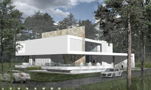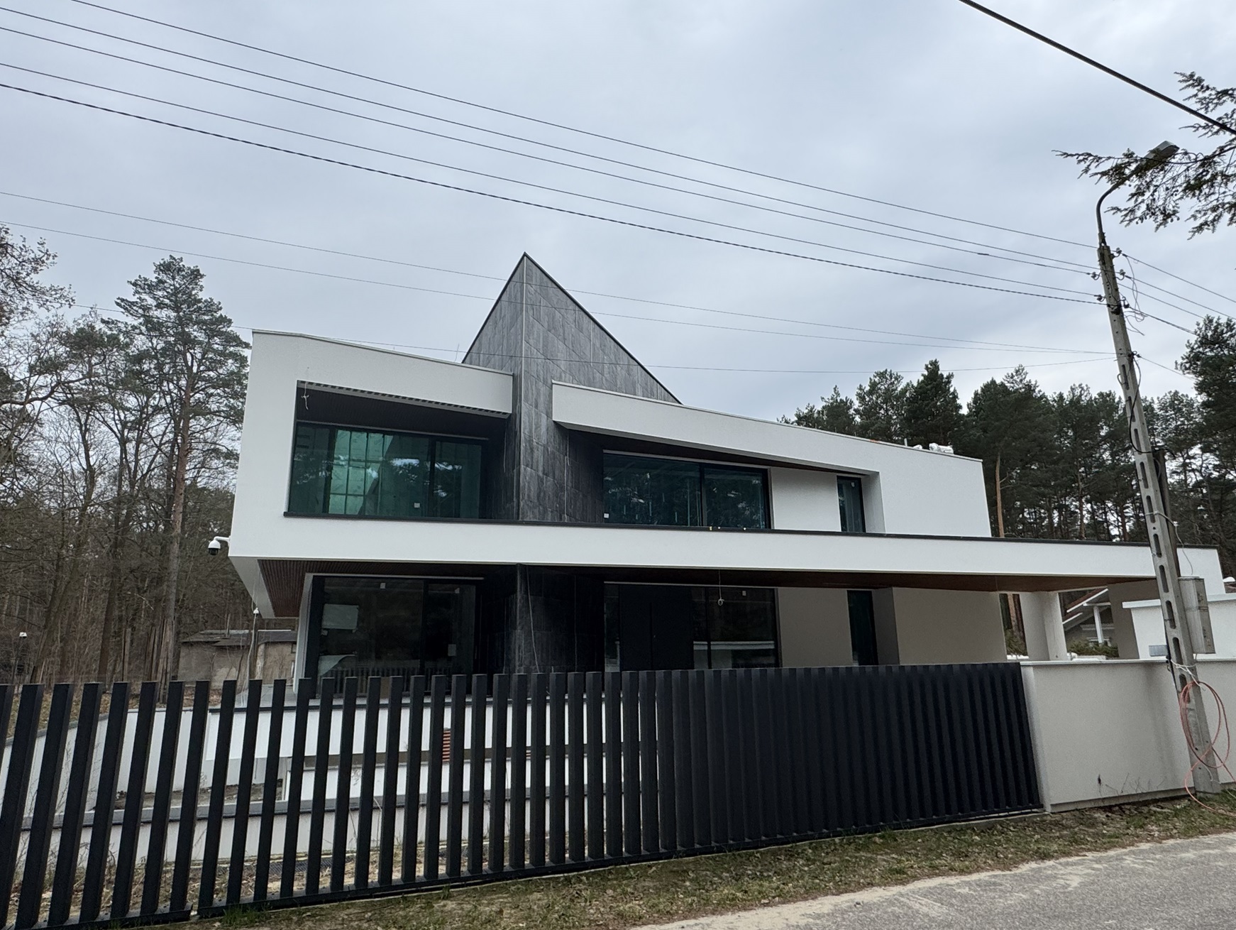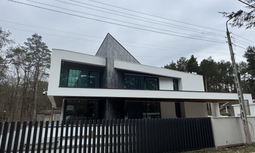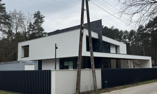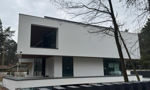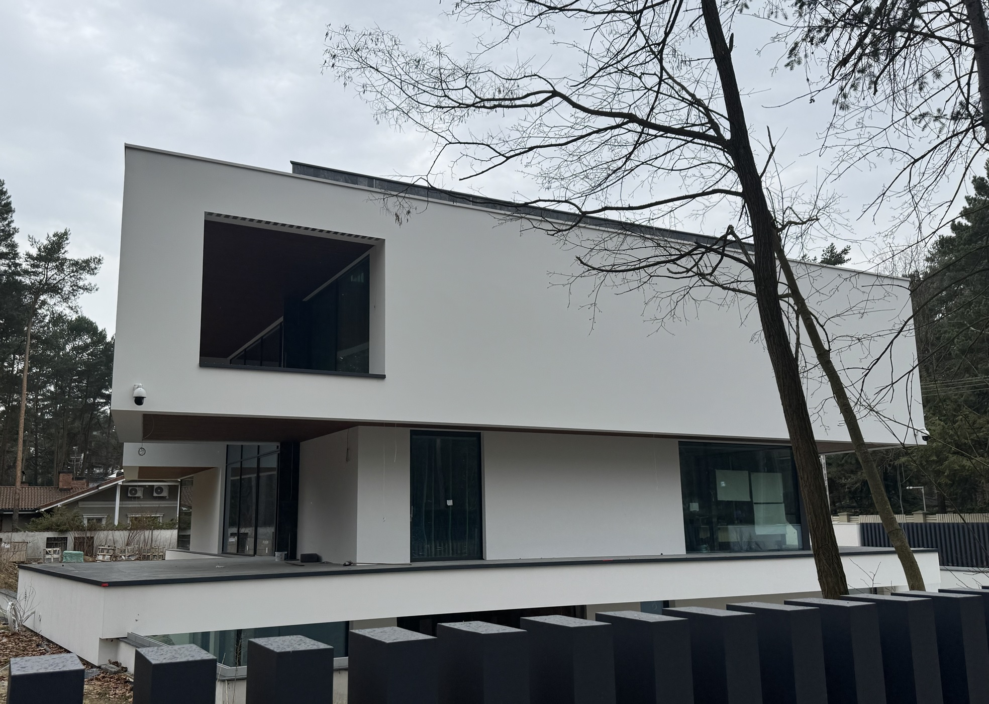 Budynek mieszkalny jednorodzinny, 3-kondygnacyjny, podpiwniczony. Dane: Powierzchnia działki 3054,00 m2, Powierzchnia zabudowy 431,61 m2, Powierzchnia użytkowa 972,80 m2, Kubatura 3225,88 m3. Architektura modernistyczna. Konstrukcja monolityczna żelbetowa. Technologia tradycyjna. Materiały najwyższej jakości. Technologie najnowocześniejsze z wykorzystaniem systemów inteligentnych. Centralna klimatyzacja wraz z rekuperacją i fotowoltaika. Bardzo rozbudowane instalacje elektroenergetyczne i multimedialne sterowane indywidualnie w każdym pomieszczeniu. Budynek podświetlony iluminacją ze sterowaniem poddanym czynnikom atmosferycznym. Wyrafinowana architektura zewnętrzna i wewnętrzna o niepowtarzalnej estetyce i guście.