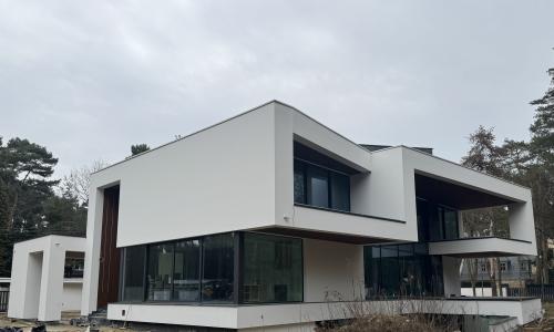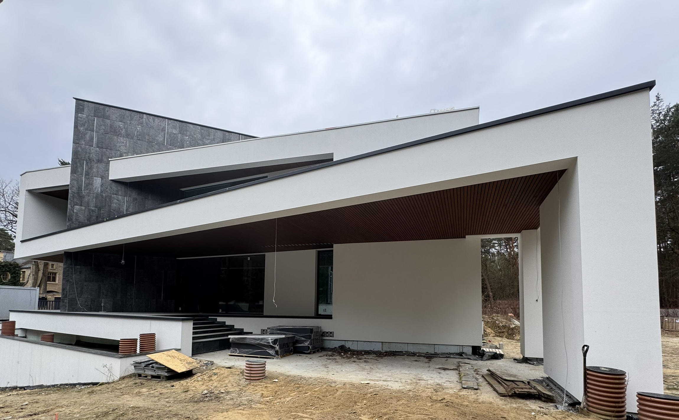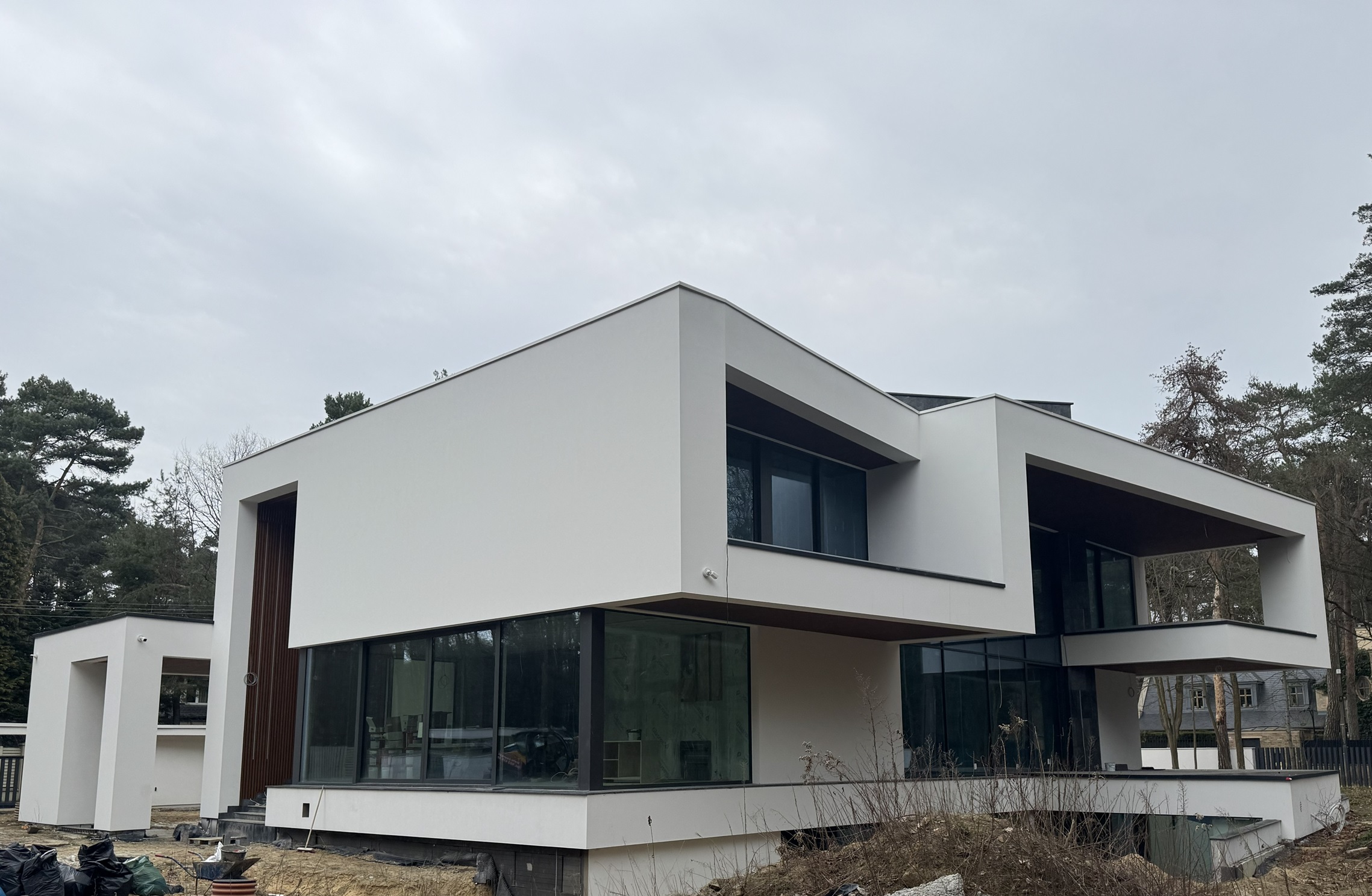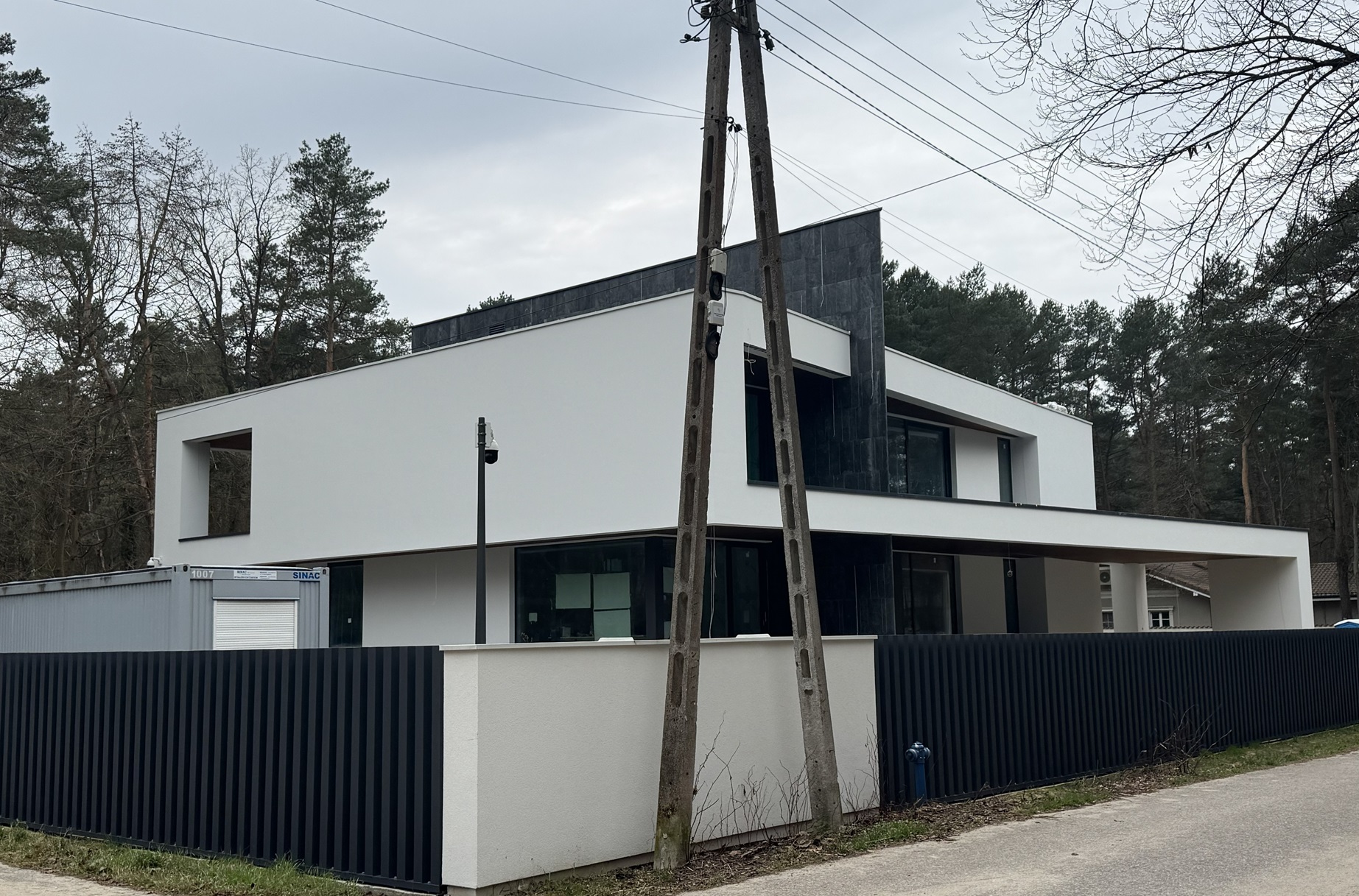 Budynek mieszkalny jednorodzinny, 3-kondygnacyjny, podpiwniczony. Dane: Powierzchnia działki 3054,00 m2, Powierzchnia zabudowy 431,61 m2, Powierzchnia użytkowa 972,80 m2, Kubatura 3225,88 m3. Architektura modernistyczna. Konstrukcja monolityczna żelbetowa. Technologia tradycyjna. Materiały najwyższej jakości. Technologie najnowocześniejsze z wykorzystaniem systemów inteligentnych. Centralna klimatyzacja wraz z rekuperacją i fotowoltaika. Bardzo rozbudowane instalacje elektroenergetyczne i multimedialne sterowane indywidualnie w każdym pomieszczeniu. Budynek podświetlony iluminacją ze sterowaniem poddanym czynnikom atmosferycznym. Wyrafinowana architektura zewnętrzna i wewnętrzna o niepowtarzalnej estetyce i guście.