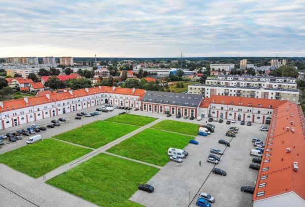 Zabytkowe stajnie i ujeżdżalnie pełniące obecnie funkcję obiektu mieszkalno-usługowego w Oławie