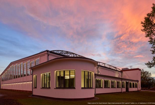 Zabytkowy hangar lotniczy infrastruktury dawnego lotniska Rakowice-Czyżyny w Krakowie