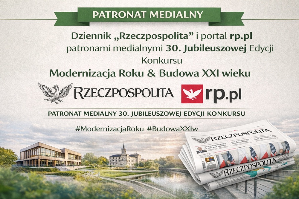 Z przyjemnością informujemy, że Dziennik „Rzeczpospolita” oraz portal rp.pl objęły patronatem medialnym jubileuszową 30. edycję Ogólnopolskiego Konkursu „Modernizacja Roku & Budowa XXI wieku” – prestiżowego wydarzenia, które od 1996 roku promuje najlepsze modernizacje, rewitalizacje i inwestycje budowlane w Polsce.