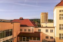 Poniżej zdjęcia inwestycji powiatu wejherowskiego: Modernizacja Powiatowego Zespołu Szkół nr 1 w Rumi z nadbudową, windą i adaptacją poddasza na bibliotekę.
